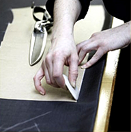 一套凱利易紳正裝,且體師要進(jìn)行20—30個(gè)數(shù)據(jù)的測量,在做的過程中,還要隨時(shí)找到身上的細(xì)微變化,以確保數(shù)據(jù)準(zhǔn)確無誤,并留下相關(guān)的影像資料備用.然后工藝師核對(duì)相關(guān)數(shù)據(jù),用紙板打出紙樣,進(jìn)行面料的裁剪。
